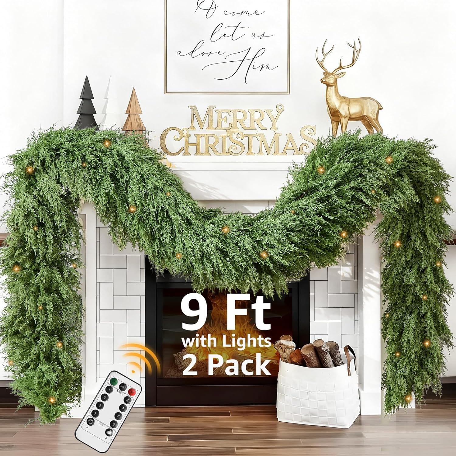 - 2 PACK 9FT CLASSIC CEDAR GARLAND: Beautifully adorns your mantle. It showcases realistic cedar needles in a deep green gradient with brown twig accents, evoking a warm, magical Christmas atmosphere