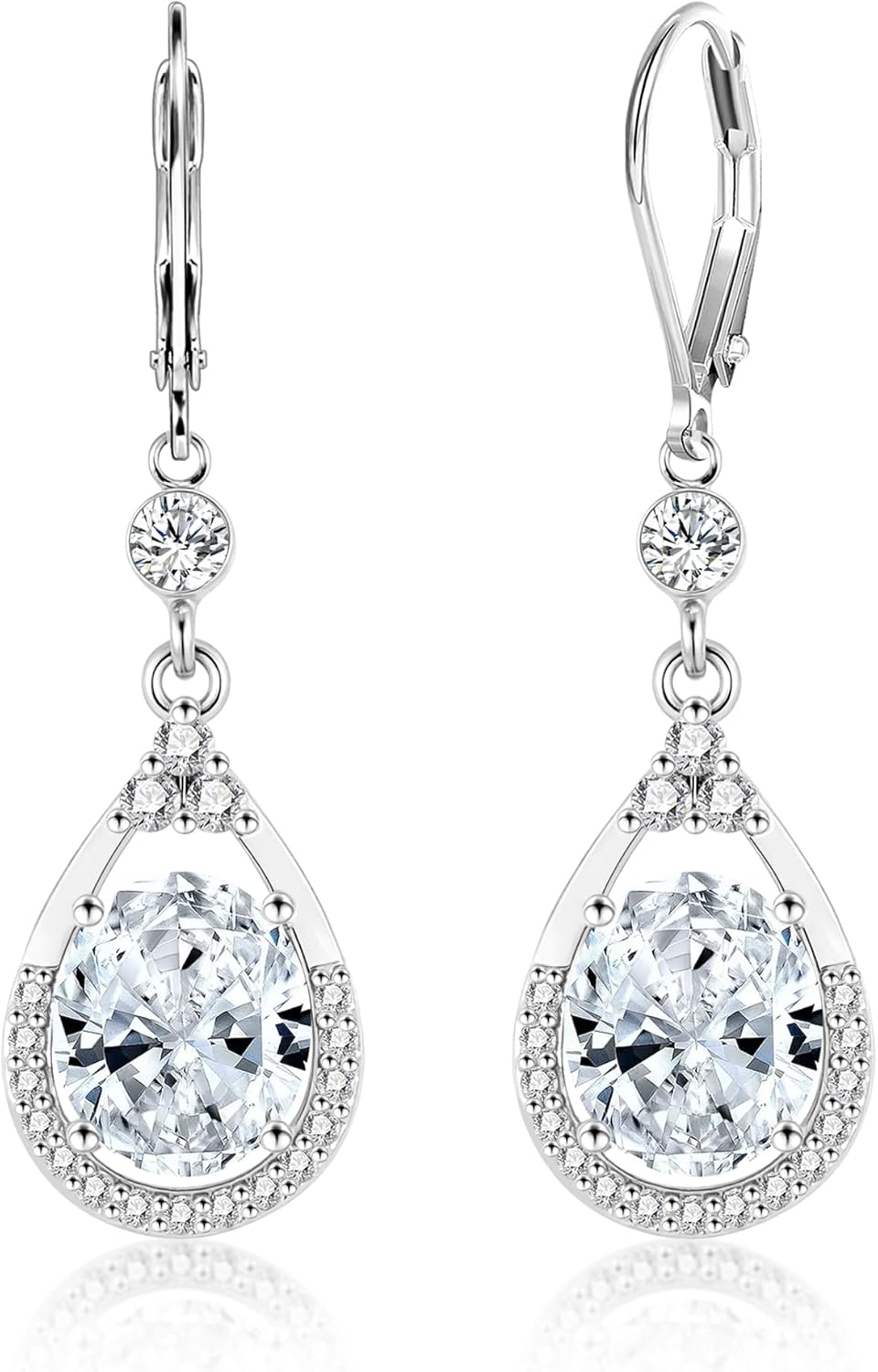Sterling Silver Drop Earrings for Women Trendy Leverback Silver Dangle Earrings with Cubic Zirconia Charm Dangle Drop Earring Jewelry Hypoallergenic