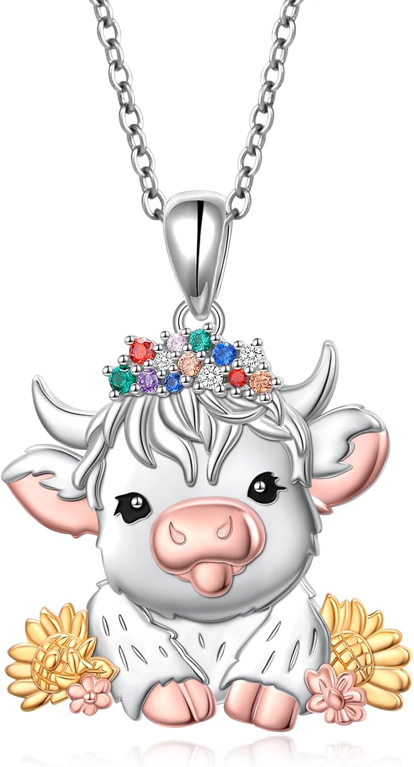 FLYOW 925 Sterling Silver Cute Animal Jewelry Hummingbird/Butterfly/Wolf/Corgi/Cat/Snake/Spider/Bat/Penguin/Bear/Opossum/Frog/Guinea Pig for Women Mother Friend Animal Lovers