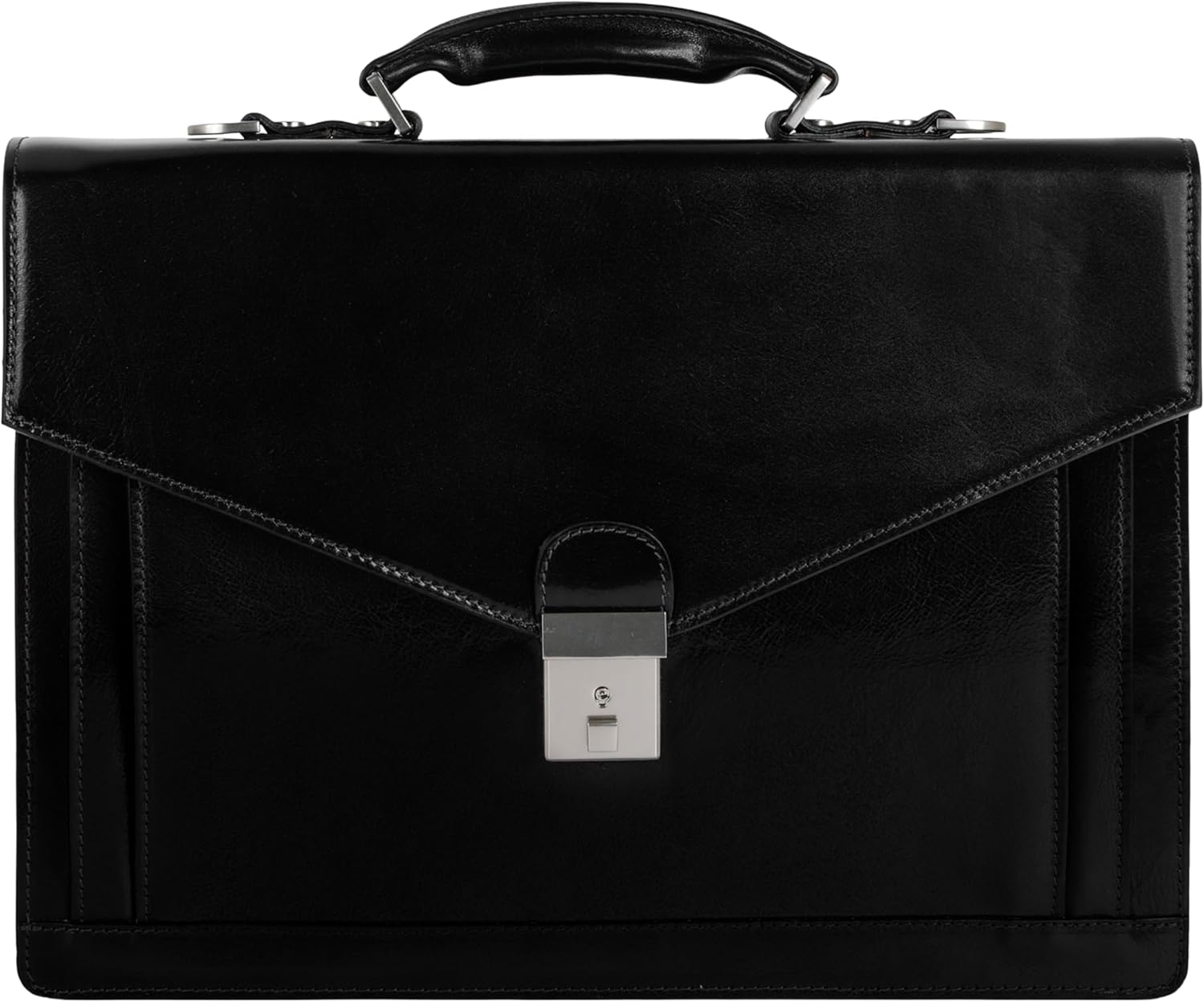 Time Resistance Leather Briefcase for Men - Business Laptop Bag - Italian Handmade Leather Bag - Attache - Gift Box Included