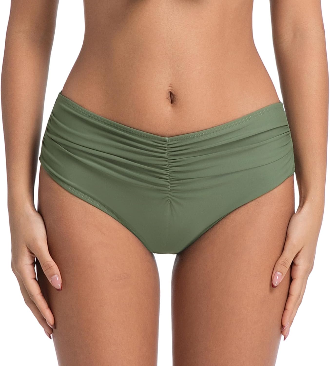 COCOPEAR Mid Rise Bathing Suit Bottoms for Women Ruched Tummy Control Swim Bottoms Full Coverage Bikini Bottoms for Women