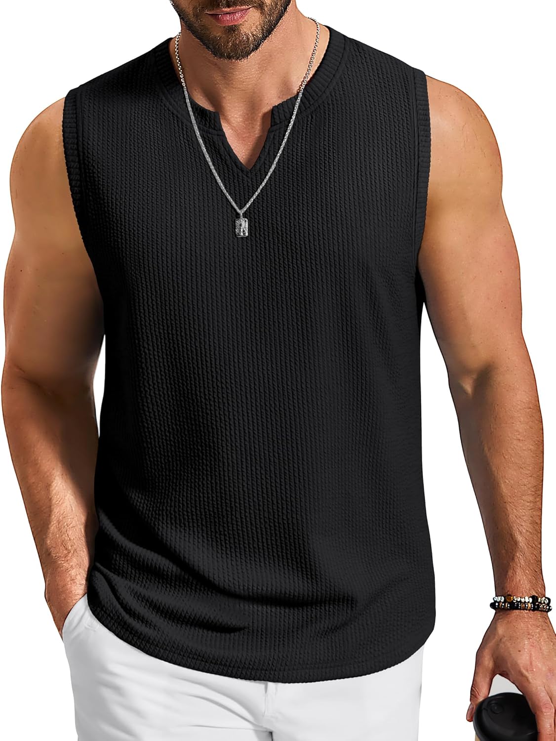 COOFANDY Mens Casual Tank Top V Neck Knit Jacquard Sleeveless T Shirts Lightweight Summer Beach Textured Tank