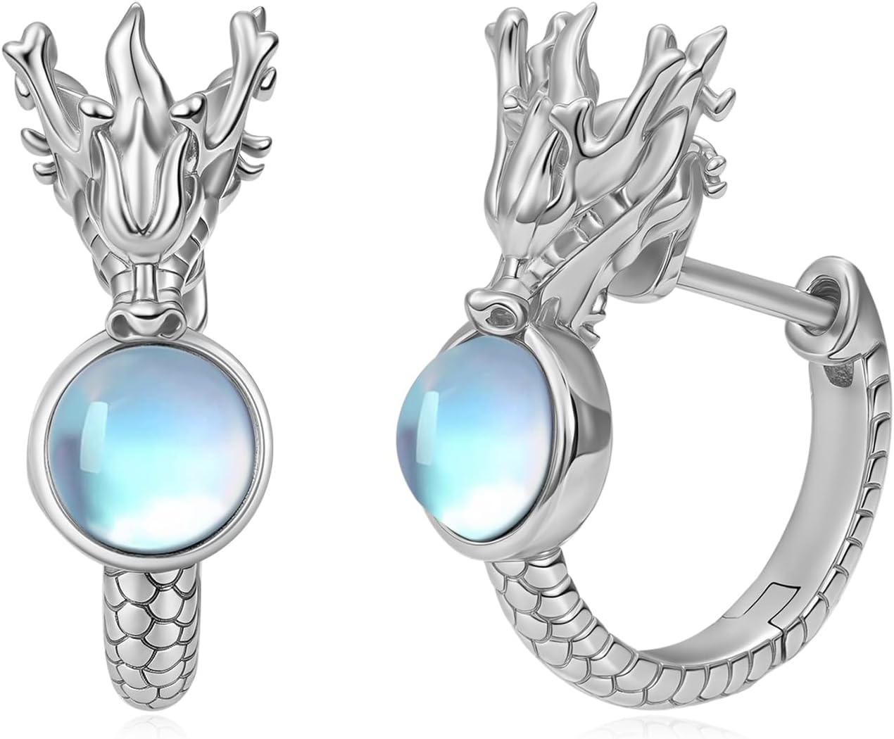 Dragon Earrings 925 Sterling Silver Moonstone Dragon Earrings Dragon Jewelry Gifts for Women