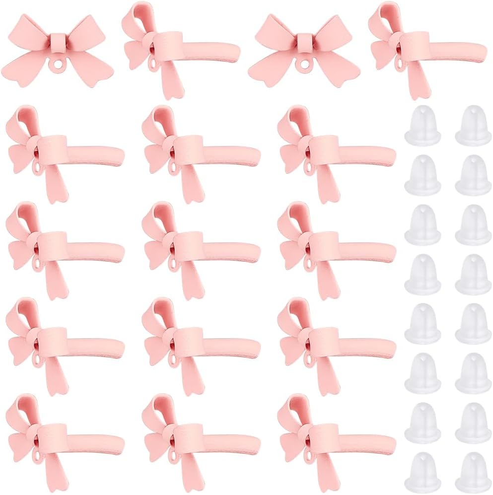 - Pink Bow Earring Studs: Pink bow earrings posts, bright and tender in color, make you full of vitality. You can also hang different decorations such as tassels, beads, etc. to make your earrings more unique