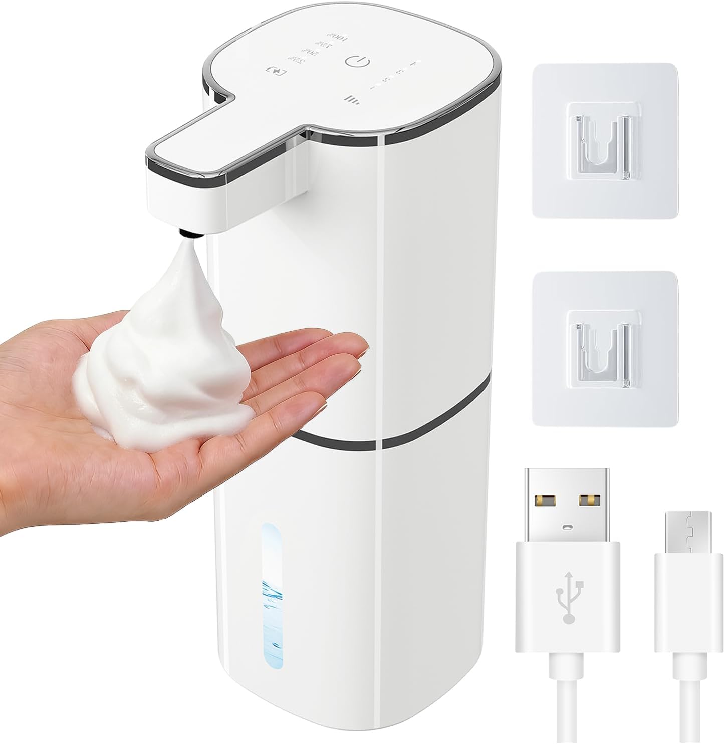 - 【4 Adjustable Foam Modes + Dual Indicators】: Customize output with 4 levels in this versatile foaming hand soap dispenser.As a top-tier foam soap dispenser, it features dedicated mode/battery indicators for easy monitoring; switch modes with a simple touch. Whether you prefer a gentle foam hand soap dispenser setting or deep-clean lather, this foaming soap dispenser adapts to all preferences.