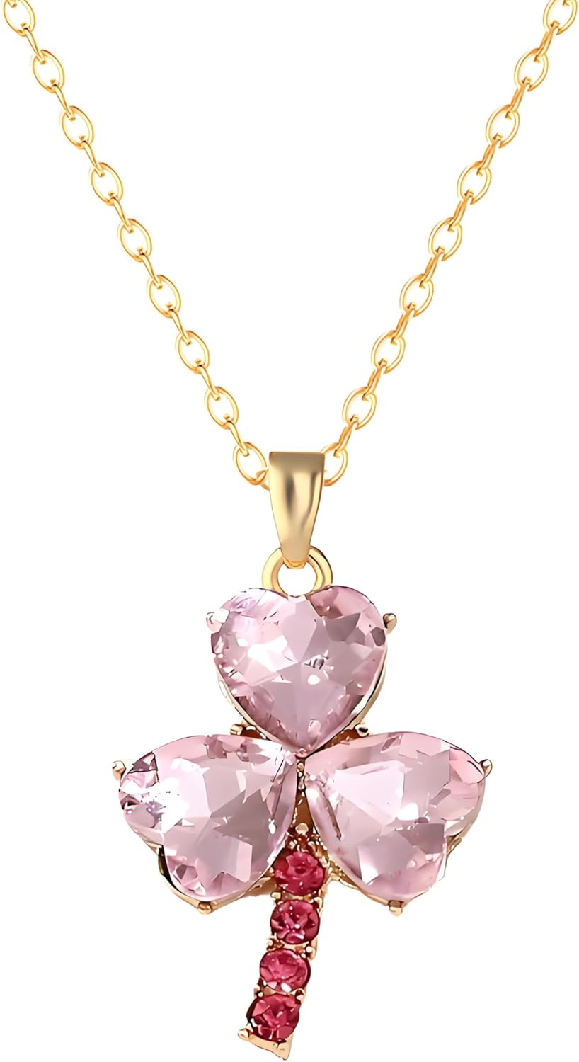 Dreuyet St Patricks Day Necklace Rhinestone Crystal Irish Shamrock Clover Green Necklace for Women Shiny Charm Lucky Pendant Three Leaf Necklaces Irish Holiday Jewelry Gift