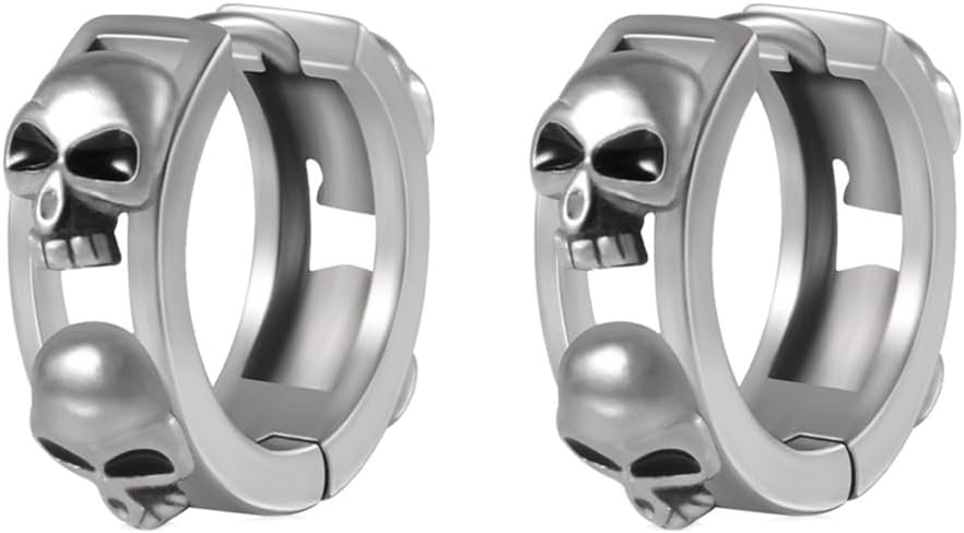 Gothic Skull Hoop Earrings for Women Men Stainless Steel 12mm Skeleton Punk Halloween Huggie Hoops Cartilage Earrings