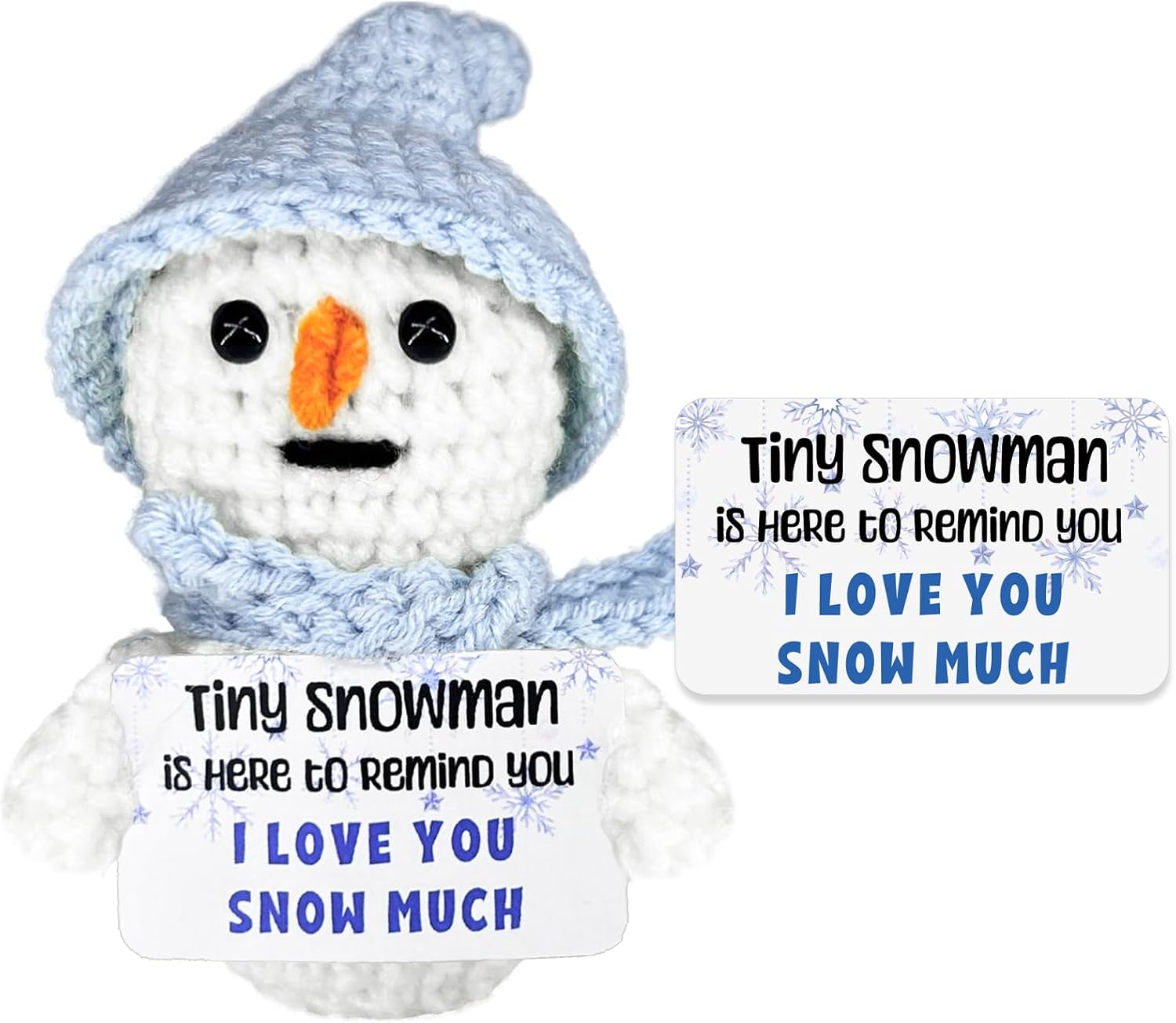 Funny Positive Snowman Gift, Cute Crochet Snowman with Positive Card Emotional Support Knitted Xmas, Christmas Doll Cheer Up Gift Encouragement Gifts for Christmas Party Decoration