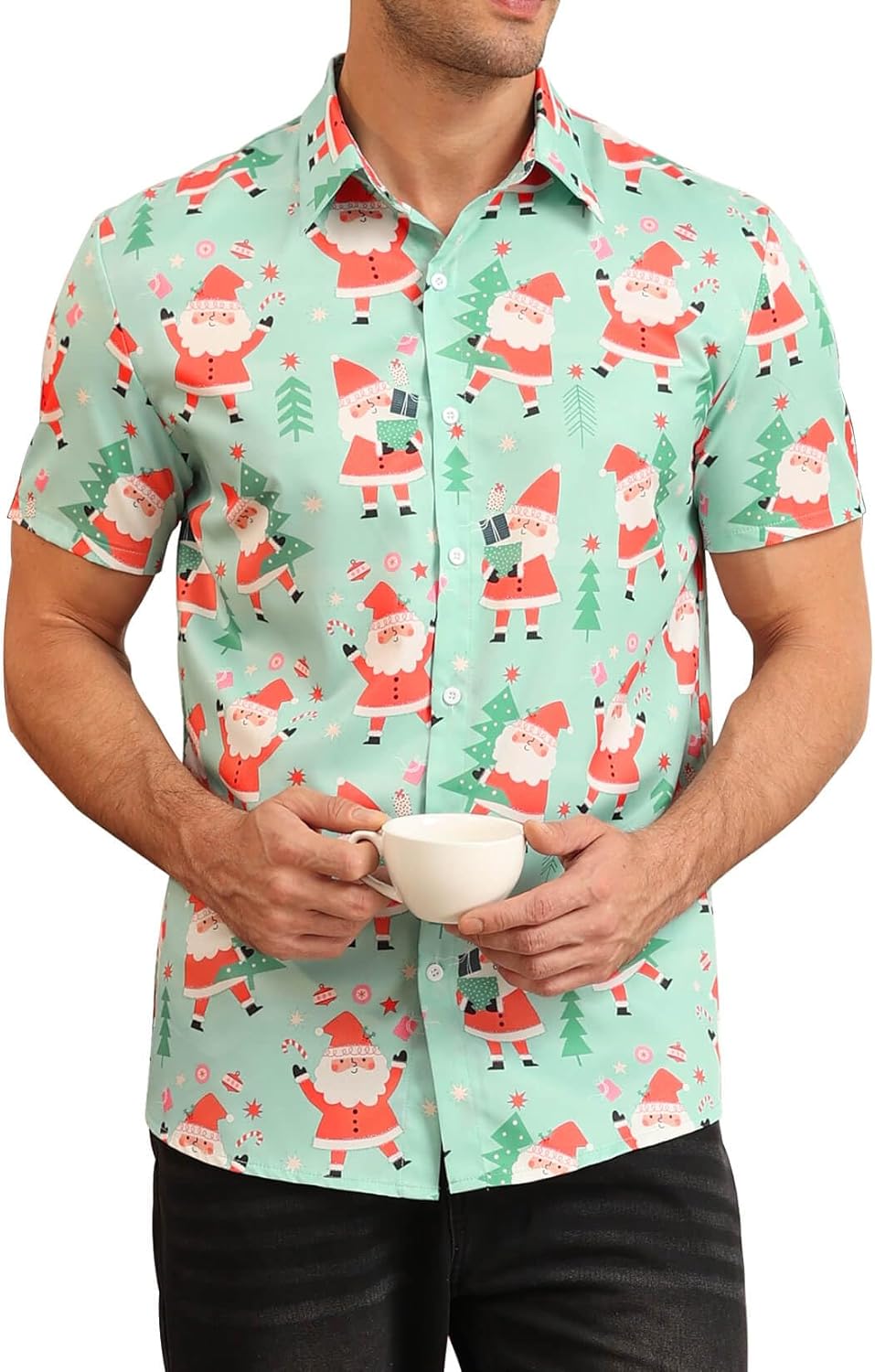 Aiyino Men's Christmas Hawaiian Shirts Short Sleeve Santa Claus Button Down Shirt for Parties Vacations and Gifts