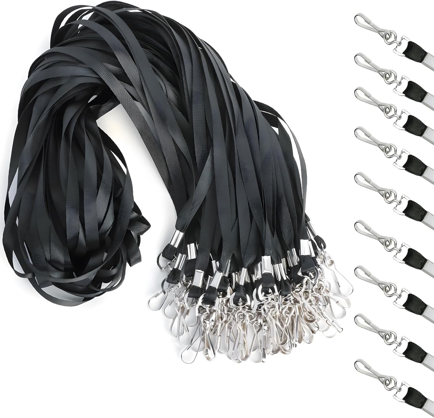 10/25/50/100/150 pcs Lanyard, Bulk Lanyards for Id Badges Flat Lanyard with Badge Clip Swivel Hook for Office School Volunteer Meeting (25, Black)