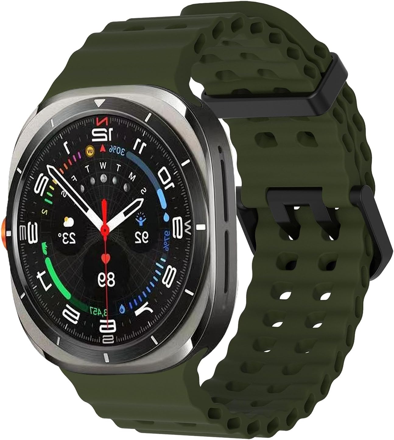 Silicone Bands Compatible with Samsung Galaxy Watch Ultra 47mm Men Women, Soft Silicone Replacement Wristbands Waterproof Strap for Galaxy Watch 7 Ultra 2024-Army Green
