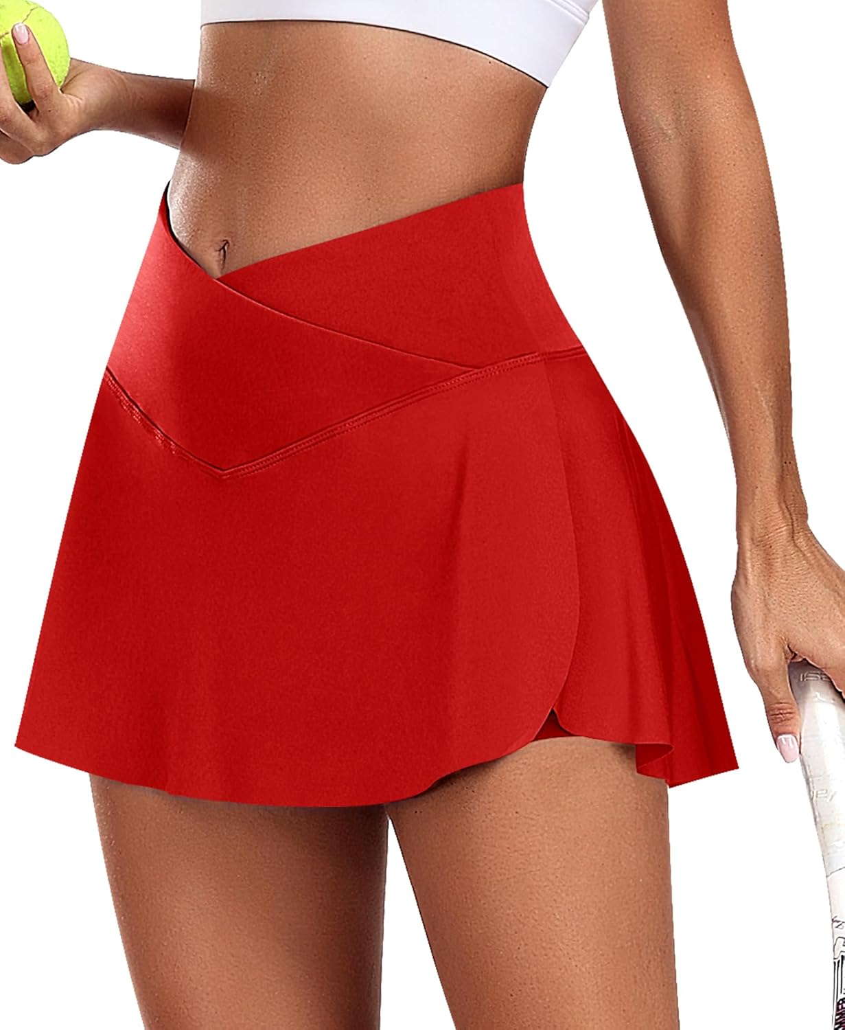 JoyGirl Womens Tennis Skirt with Shorts Crossover Golf Skort Mini High Waisted Workout Athletic Skorts Skirts with Pockets