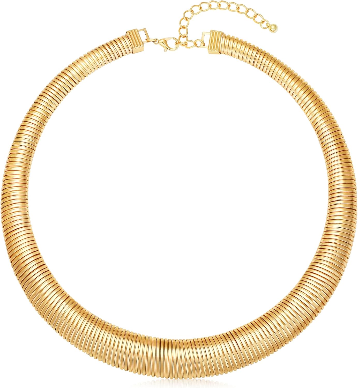 MISS RIGHT Chunky Gold Chain Statement Choker Necklace for Women Trendy, 14K Gold Plated Thick Snake Chain Collar Torque Layered Necklaces Jewelry Gifts