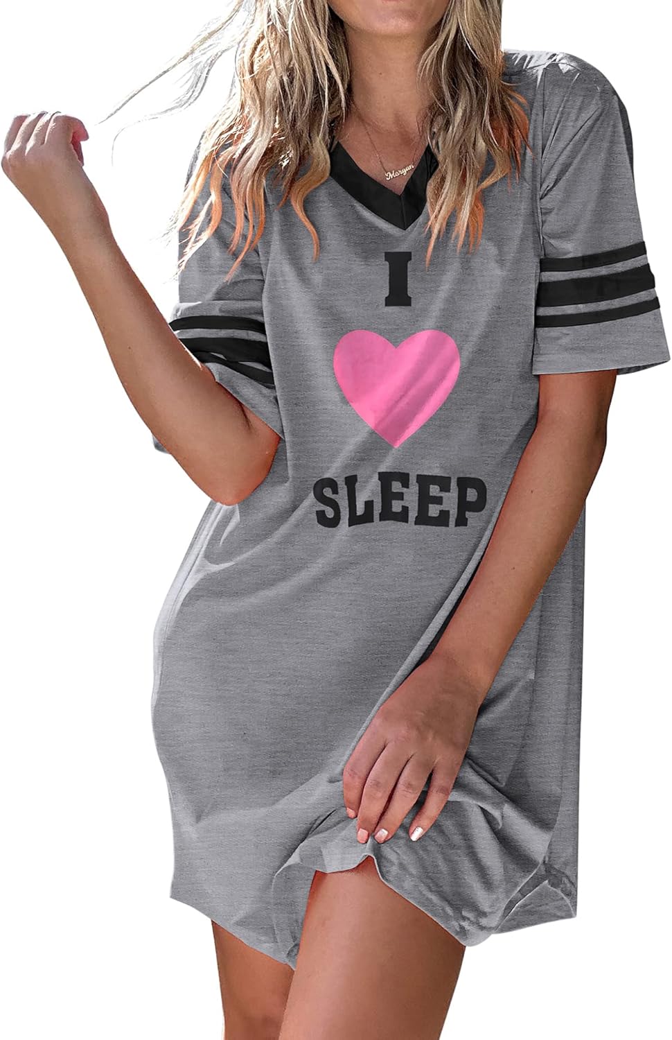Ekouaer Nightgowns for Women Cotton Night Gown Short Sleeve Sleepwear V Neck Color Block Sleep Shirts Ladies Night Shirts
