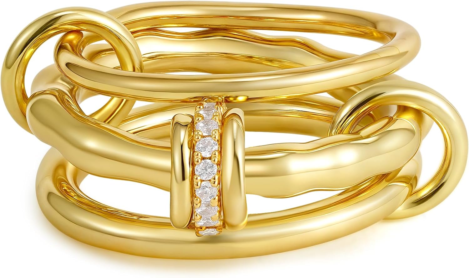 SLOONG Gold Stackable Rings for Women Non Tarnish, Dainty 18K Gold Plated Cubic Zirconia Rings, Silver Rose Gold Rings Set, Multi Ring Mixed Metals Stackable Ring Set for Women