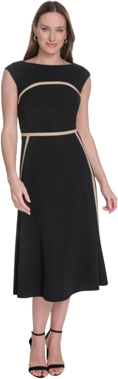 Tommy Hilfiger Womens Cap Sleeve Wide Neck Fit and Flare Midi Dress