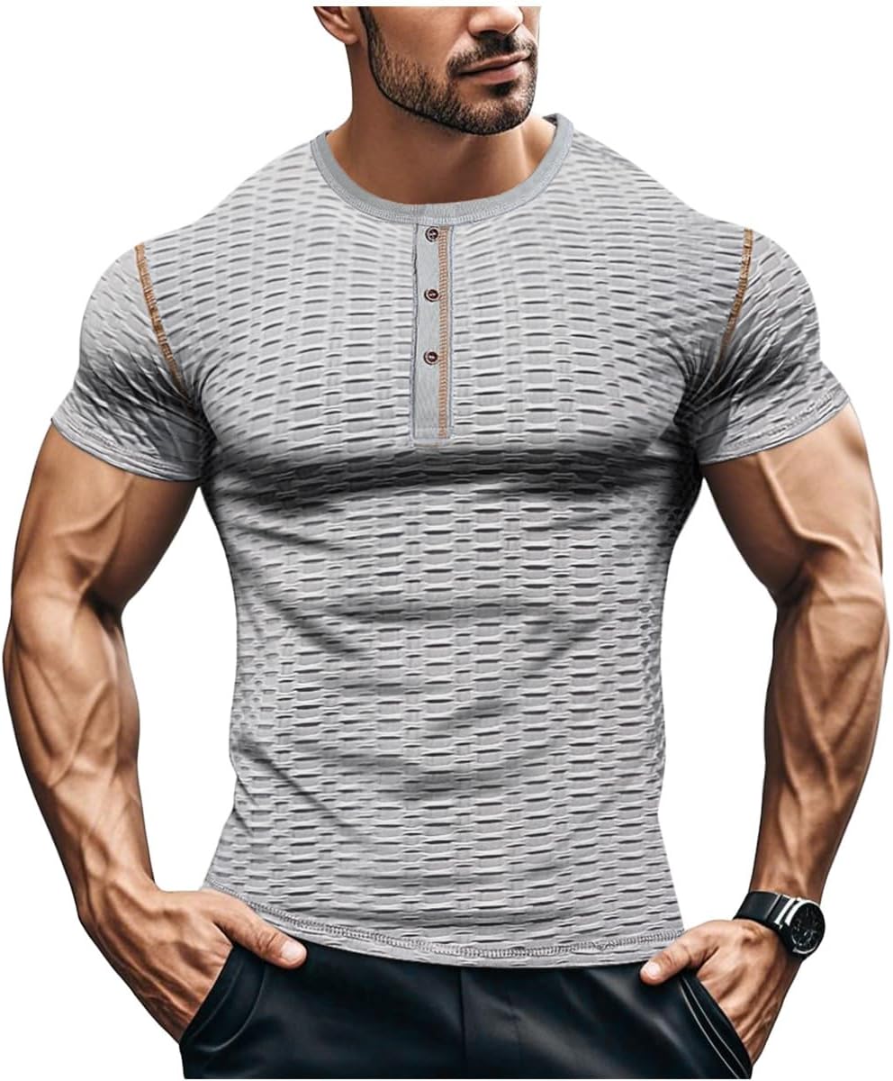 Mens Muscle Slim T Shirt Gym Workout Athletic Tee Shirts V Neck Short Sleeve Shirts