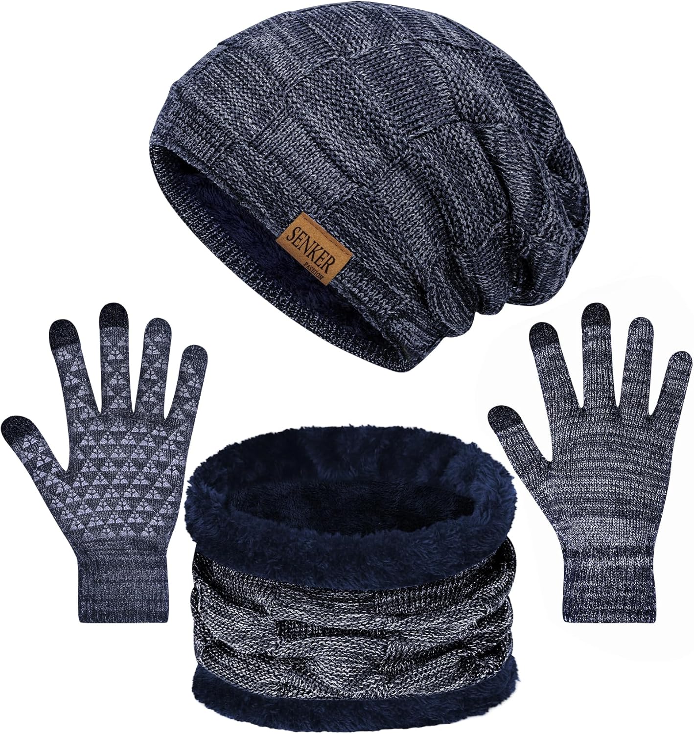 Senker Fashion Winter Hats Scarf and Gloves Set for Men Women, Slouchy Beanie Cap Neck Warmer Screen Touch Gloves Gifts