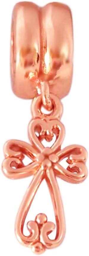 Rose Gold Filigree Heart Cross Pendant Charm 925 Silver Christian Charm Keep Faith Bead fit Bracelet