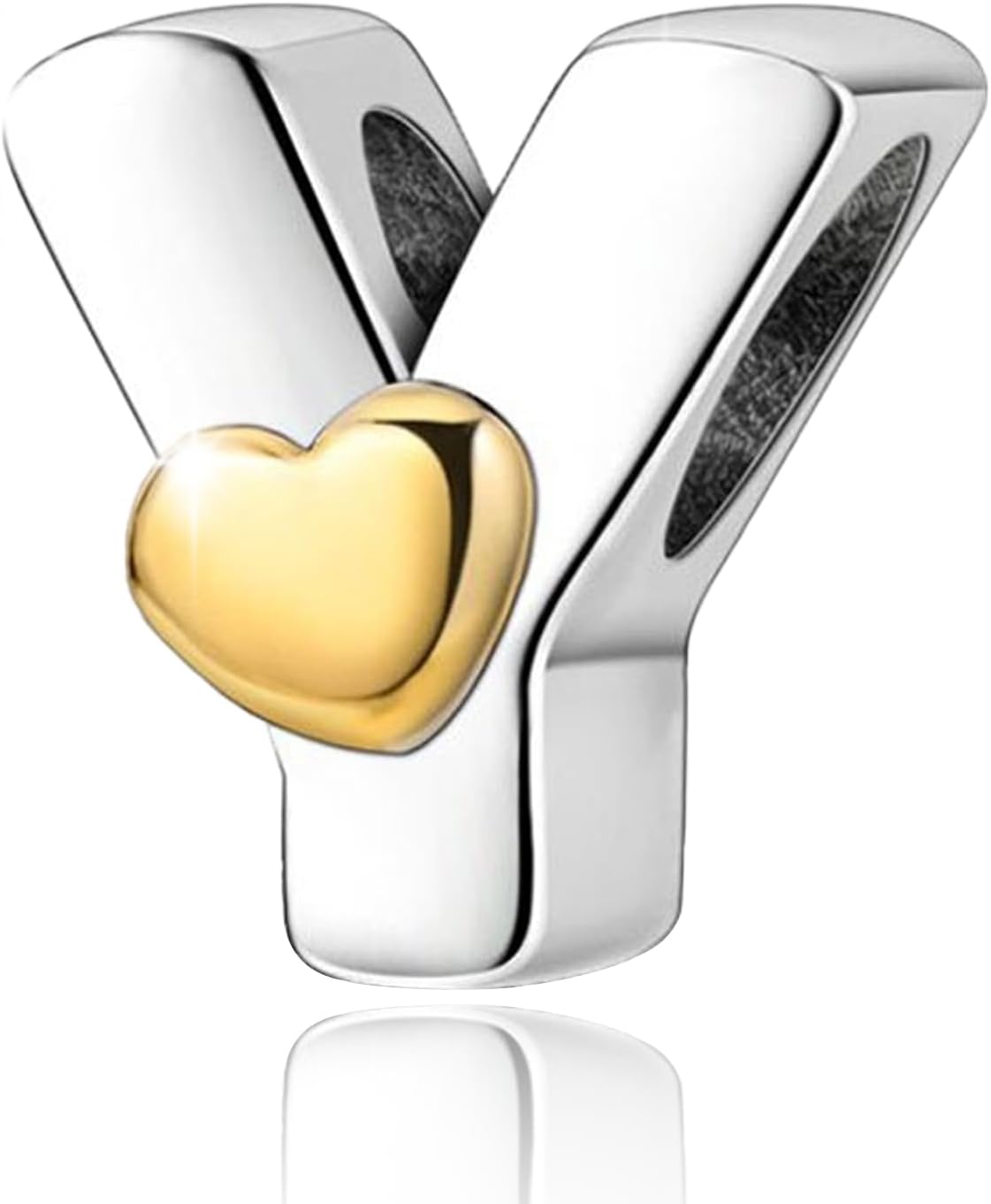PARCOM S925 Sterling Silver Charms for Bracelets and Necklaces,Letter Charms A-Z for Bracelet Necklace with Golden Heart Initial Beads Pendant Jewelry Bracelets for Women Birthday Ceremony, perfect Valentine's Day gift