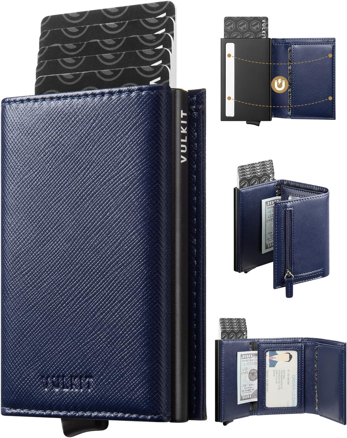 VULKIT Pop up Wallet RFID Blocking Leather Credit Card Wallet with Banknote Compartment, ID Window & Coin Pocket