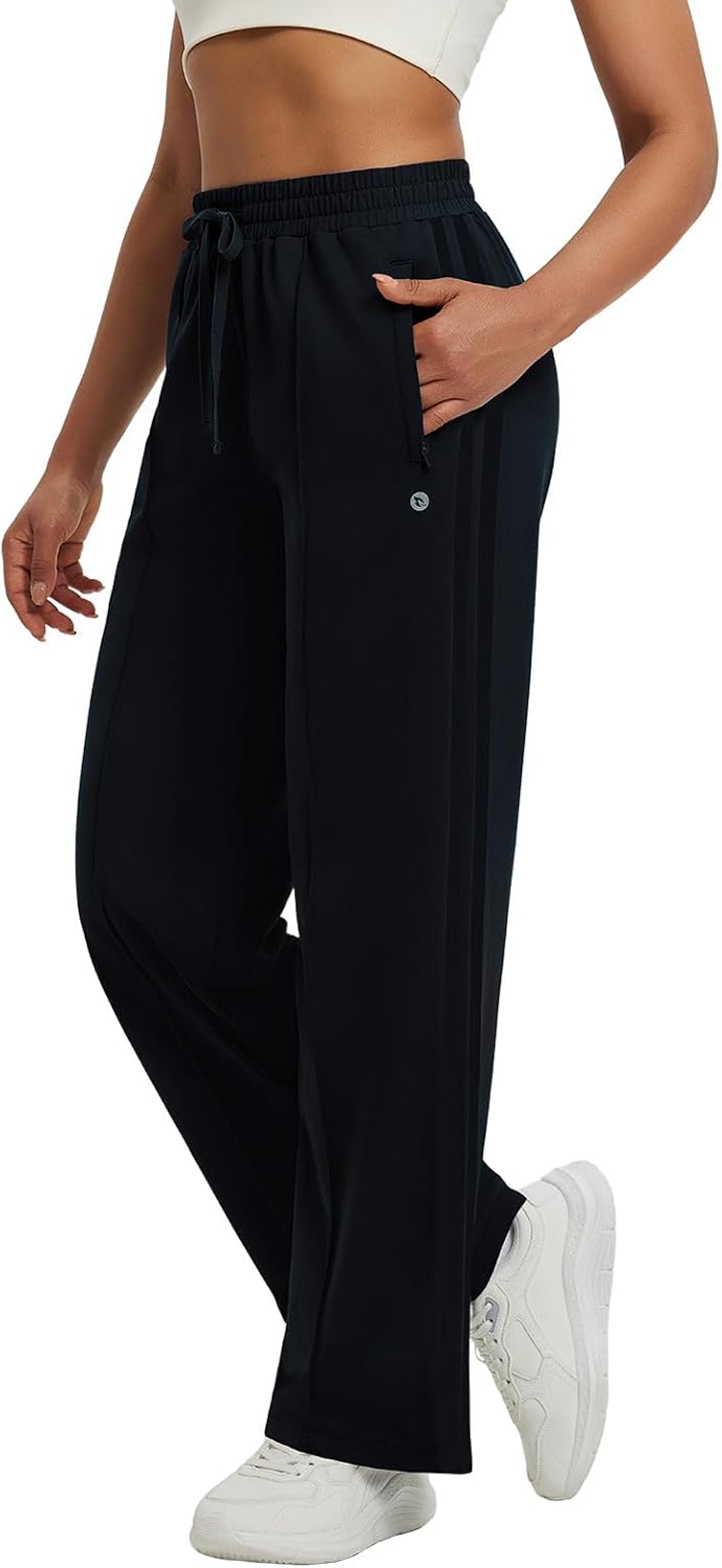baleaf Women's Fleece Lined Pants Wide Leg Track Pants with Zipper Pockets Loose Fit Straight Leg Pull on Pants for Winter