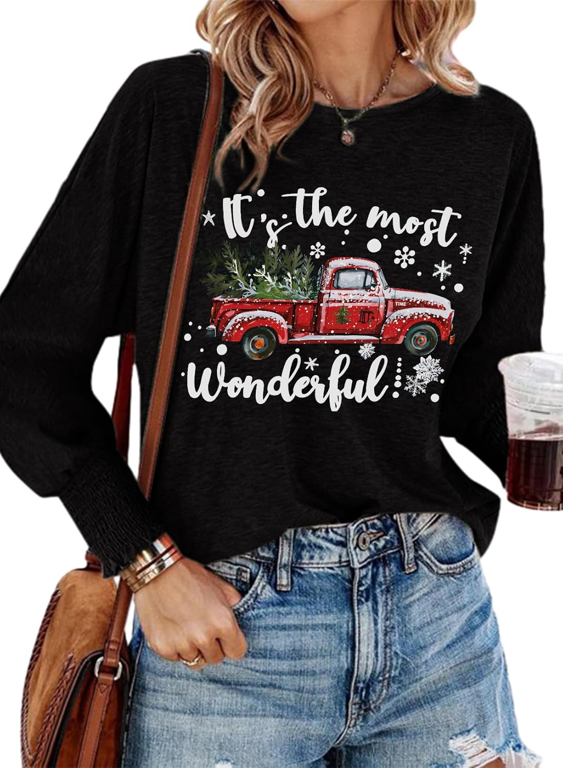 Dokotoo Merry Christmas T Shirts for Women 2024 Long Sleeve Crewneck Blouses Womens Tops Business Casual Loose Shirts Basic Tee