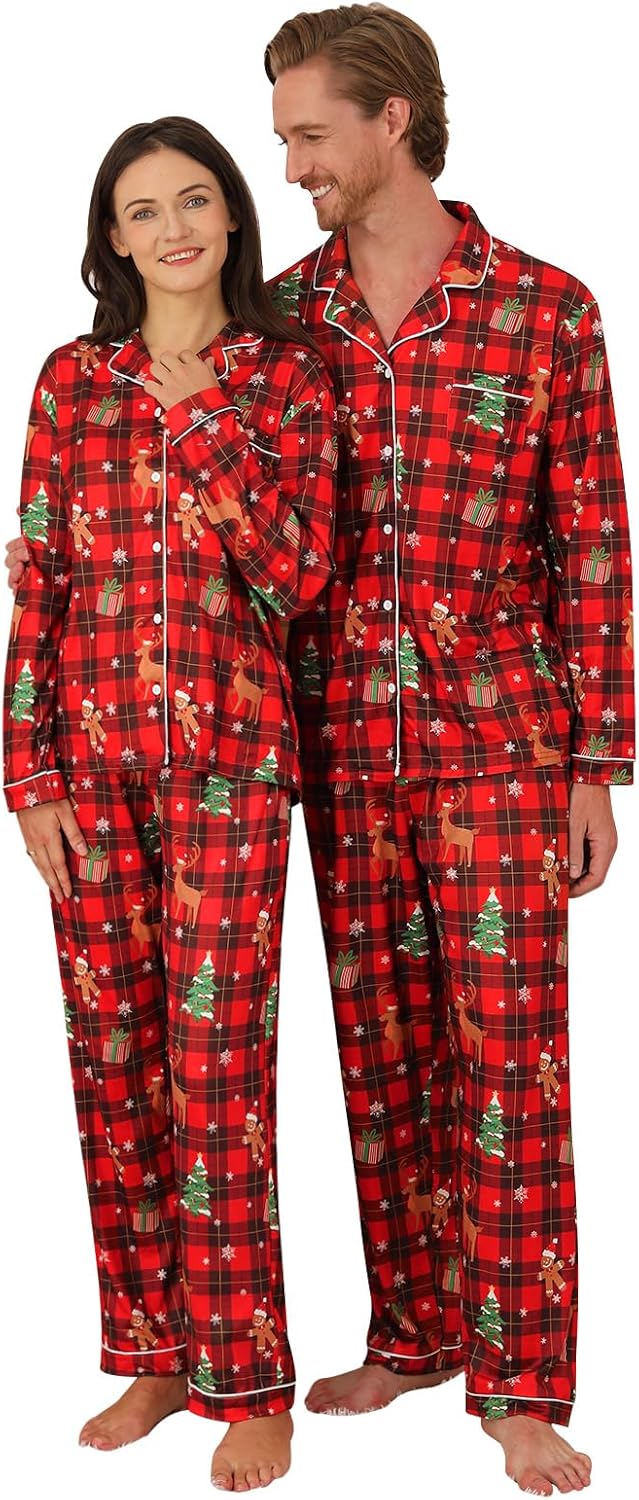 Christmas Matching Pajamas for Couples Women Men Button Down Pjs Set Festival Party Sleepwear Loungewear Set