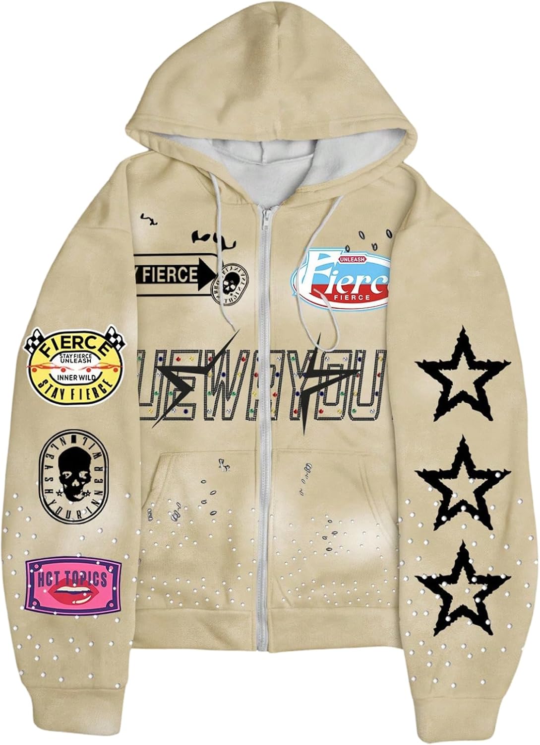 Men's Star Letter Graphic Y2K Hoodies Zip Up Long Sleeve Hooded Sweatshirts Drip Clothes