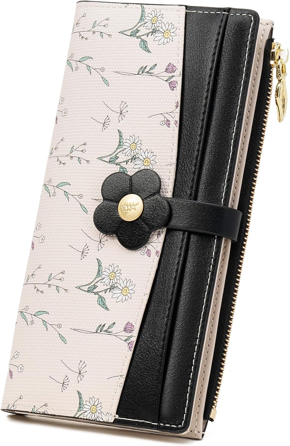 GAEKEAO Womens Wallet Slim Thin RFID Blocking Bifold Floral Vegan Leather Card Holder Large Capacity Wallet with Zipper Pocket
