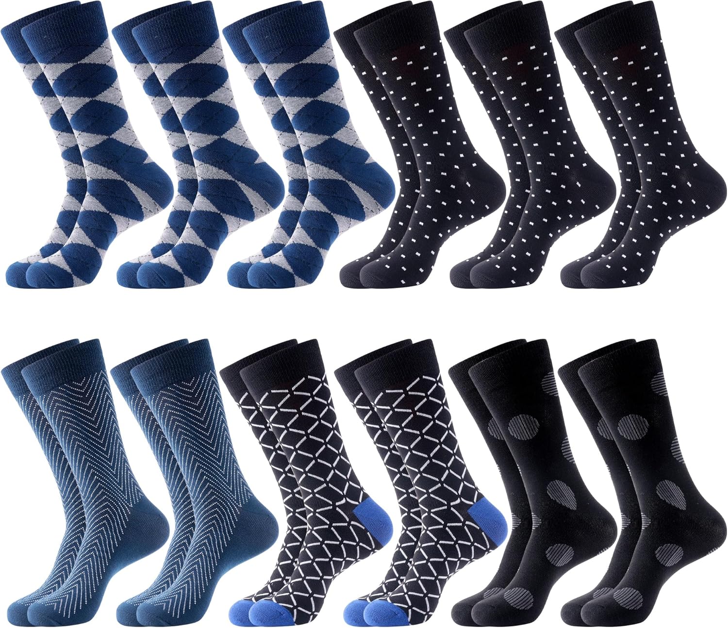Parquet 12 Pack Dress Socks for Men- Fancy Argyle and Classic Pattern Dress Socks