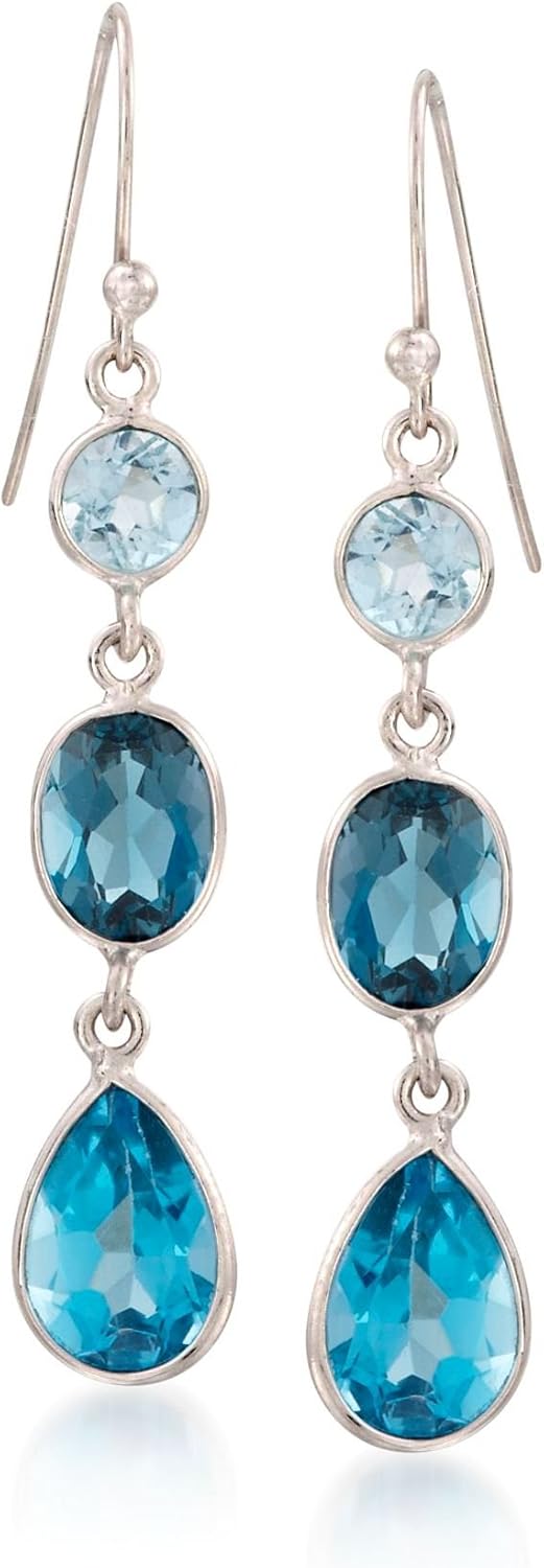 Ross-Simons 8.90 ct. t.w. Tonal Blue Topaz Linear Earrings in Sterling Silver