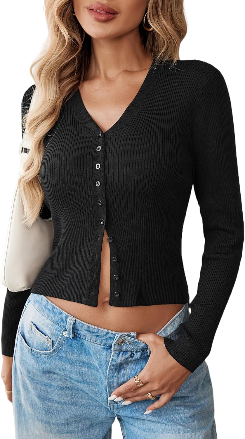 Women's Long Sleeve Sweater Casual Crop Tight Shirts Button Down Top Y2k Fall Going Out Tops Sweaters 2502