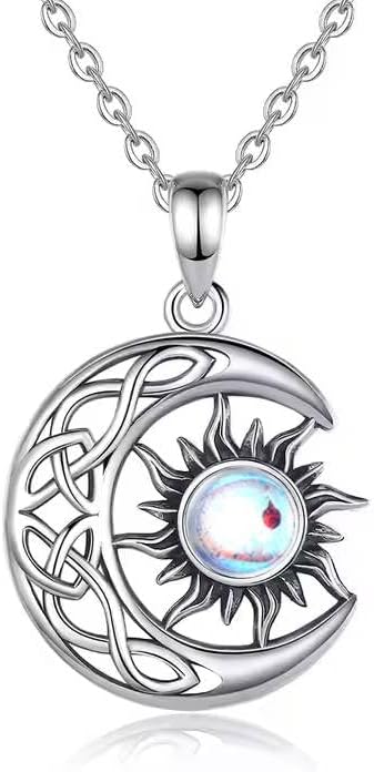 18K Gold Plated Celestial Moon and Sun Pendant Necklace – Stainless Steel with Opal Center, Celtic Inspired Statement Jewelry