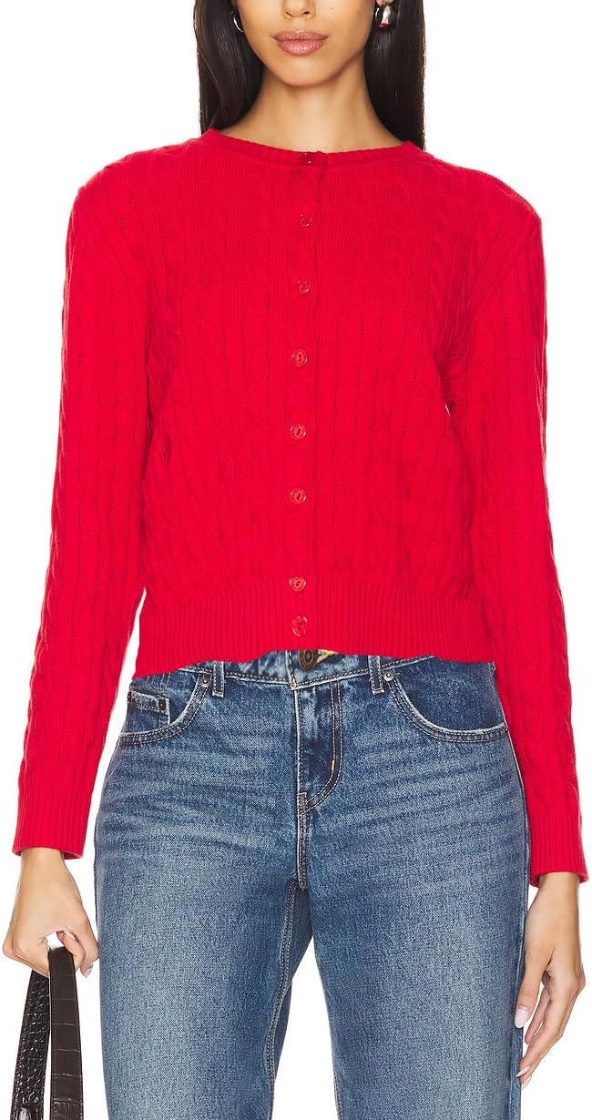 JLCNCUE Womens Cable Knit Cardigan Crewneck Open Front Long Sleeves Sweater 2025 Fall Trendy Button Dwon Cropped Cardigan