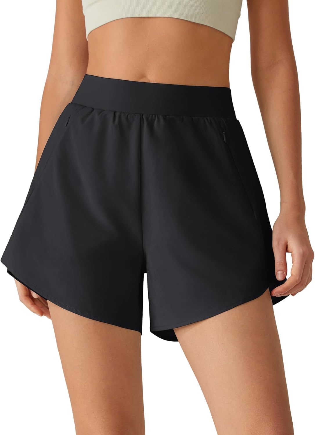 G4Free Chillwhisp Workout Shorts Women 2.5" A Line Elastic Waistband with Zipper Pockets for Running Casual Summer