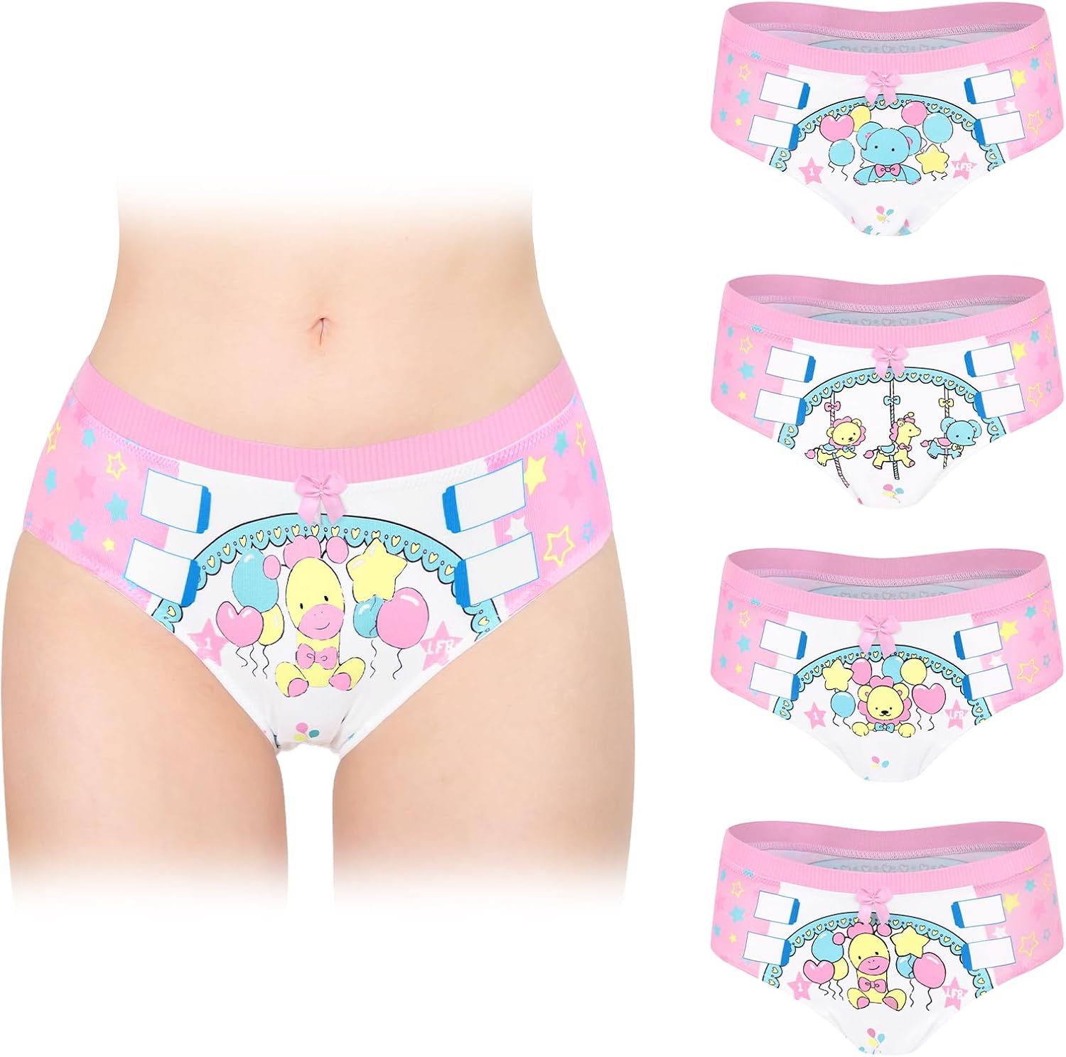 Littleforbig Women's Silky Soft Underwear Comfortable Briefs Babydoll Little Circus 'Oopsie' Potty Pants 4 Pack Panties Set