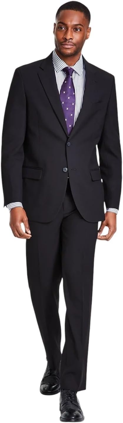 Nautica Mens Modern fit 2 Piece Suit 52 R / 47 Waist Black Solid Stretch
