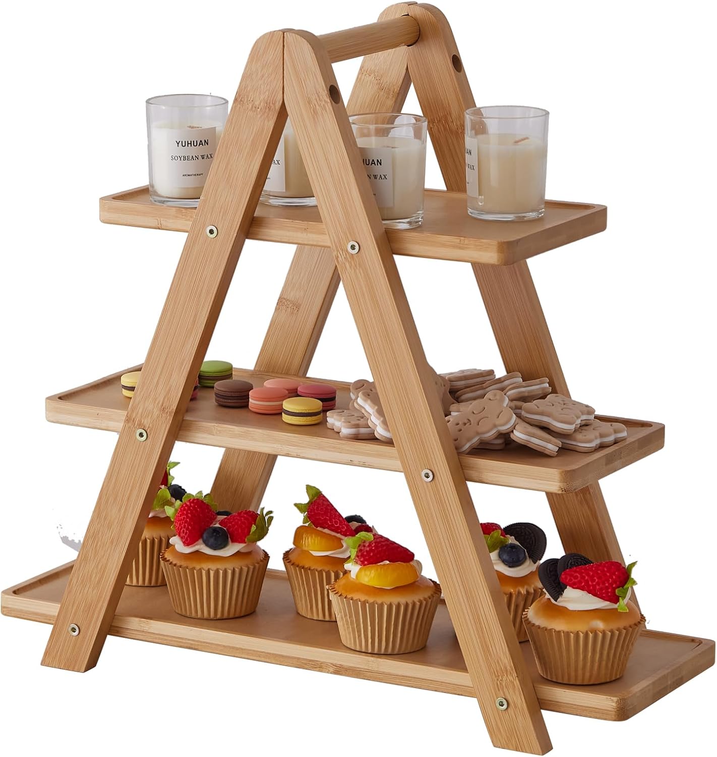 3 Tier Serving Tray, Cupcake Stand,Party Serving Decorative Tray Decor with 3 Bamboo Serving Platters for Fruit Dessert Presentation (Natural)
