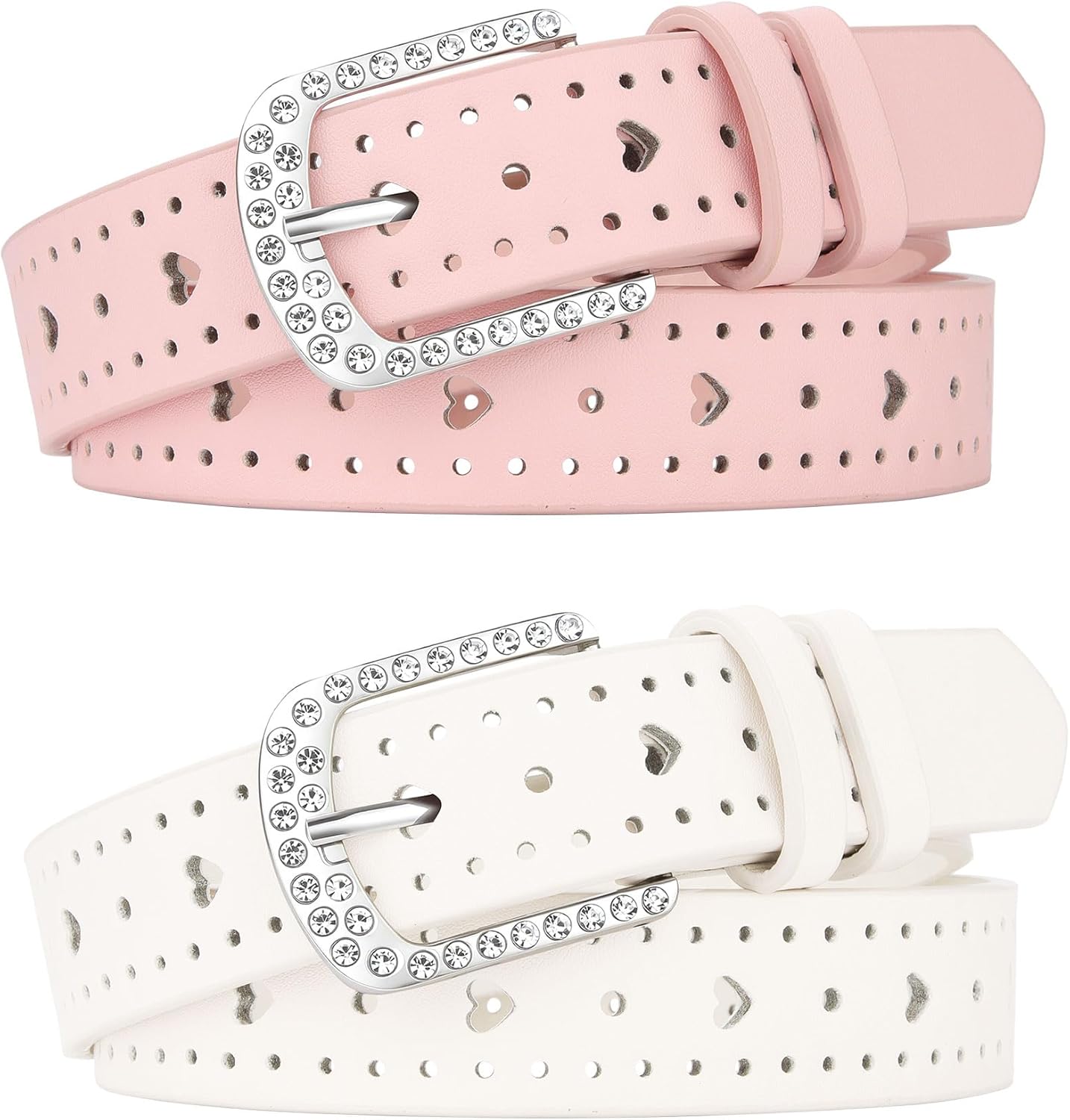 AWAYTR 2 Pcs Girls Leather Belt, With Rhinestone Buckle Kids Western Belt With Heart Cutouts for Dress Jeans