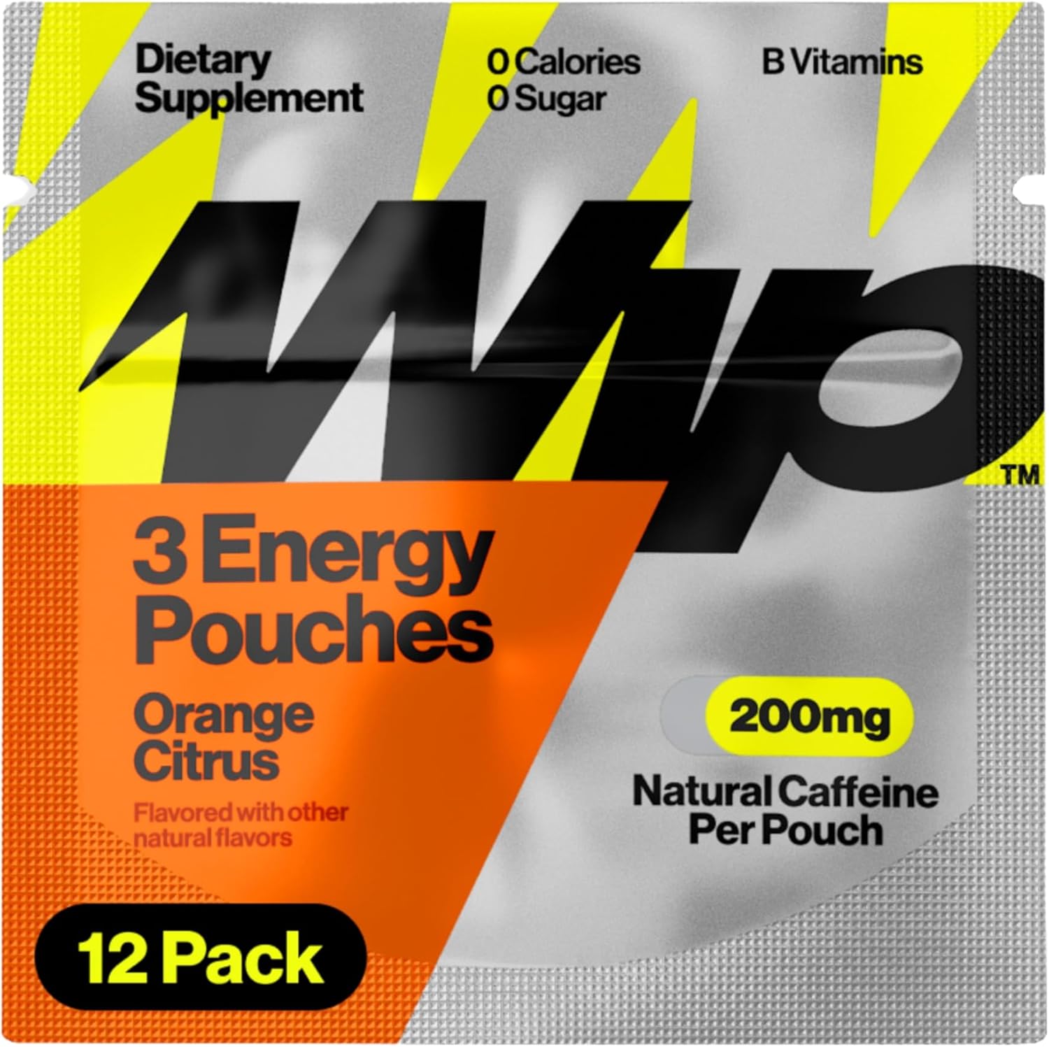 Wip Energy Pouches, Travel Packs, Sugar Free, 200mg Natural Caffeine, B Vitamins, Minerals, L-Theanine for Energy Support, Orange Citrus, 12 Packs 3 Pouches Each