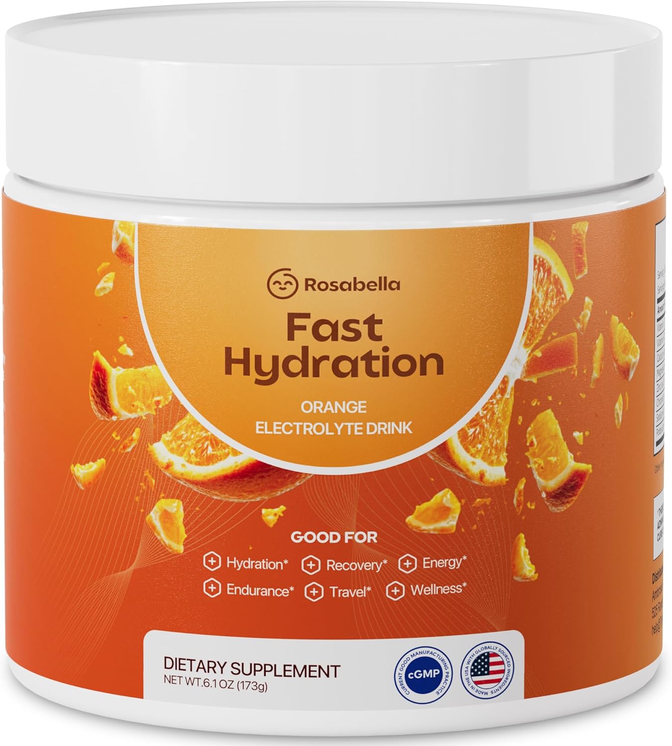 Rosabella Electrolyte Drink Powder – Orange – Zero Sugar Hydration Supplement – Electrolytes with Sodium, Potassium, Magnesium, Calcium – Sports Drink Alternative – 30 Servings (6.1 oz)