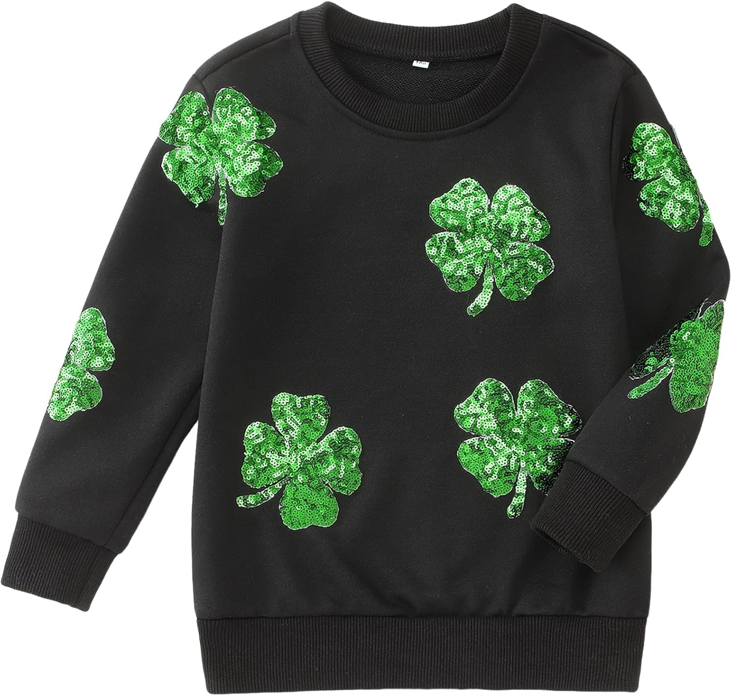 Girls St. Patrick's Day Sweatshirt Sequin Clover Long Sleeve Shirt Glitter Shamrock Outfits Kids Irish Pullover Tops