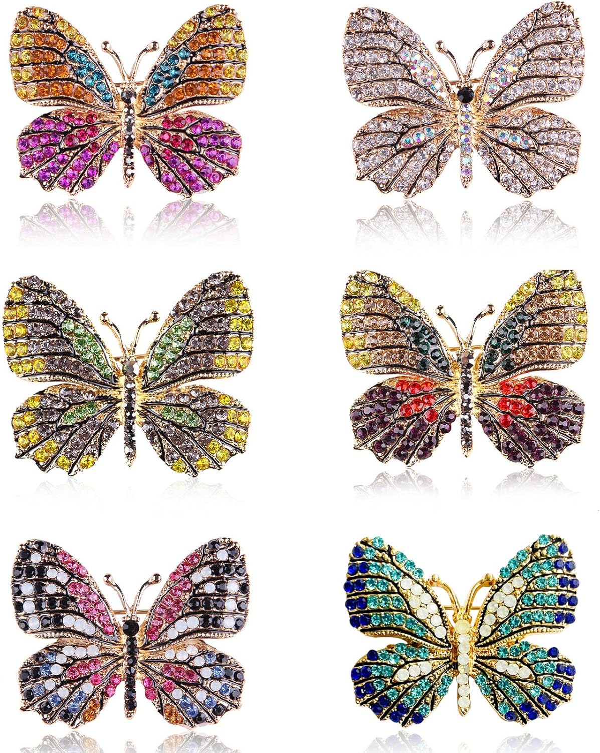 6 PCS Multicolor Rhinestone Crystal Butterfly Brooch Pin Lapel Pin for Women