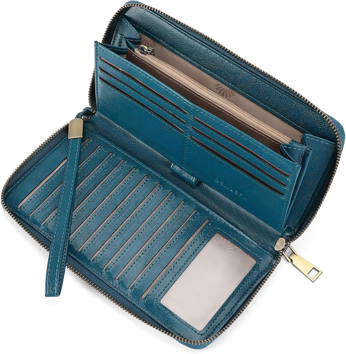 SENDEFN Leather Women's Wallets RFID Blocking Zip Around Large Capacity Long Credit Card Holder Wallet