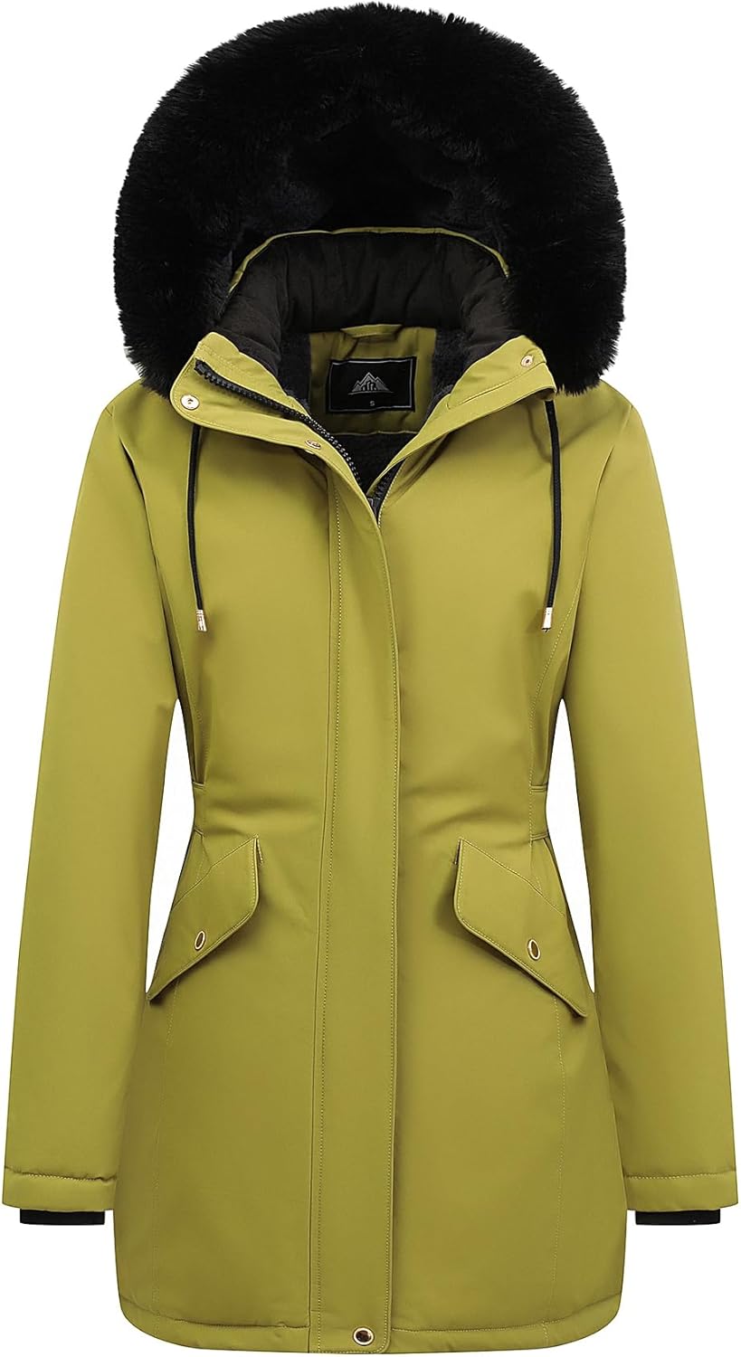 MOERDENG Women's Long Winter Down Coat Thicken Fleece Lined Parka Warm Puffer Jacket With Faux Fur Detachable Hood