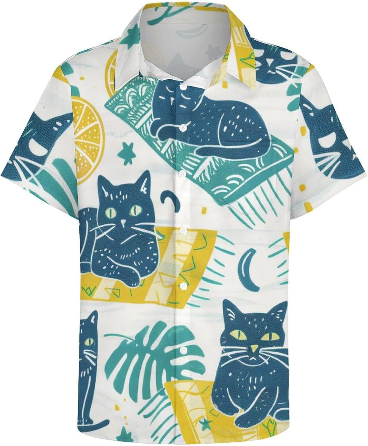 Mens Hawaiian Shirts Funny Cat Print Short Sleeve Aloha Beach Shirt Cute Cat Summer Button Down Shirt