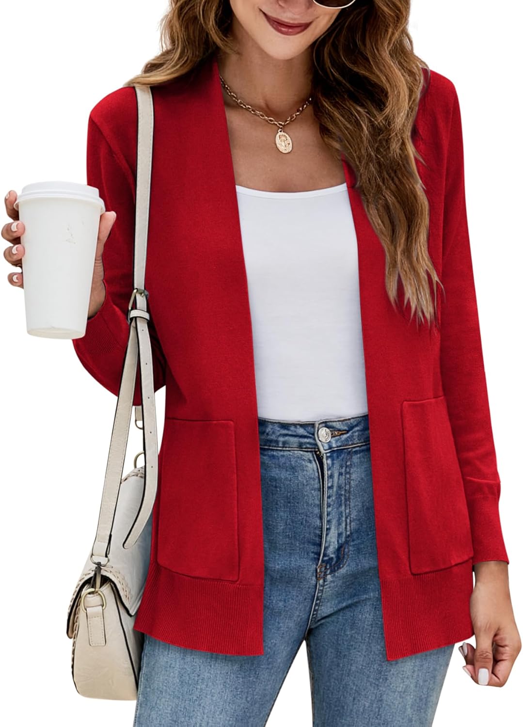 Yousify Womens Cardigan Sweater Long Sleeve Open Front Knit Cardigan Sweater with Pockets