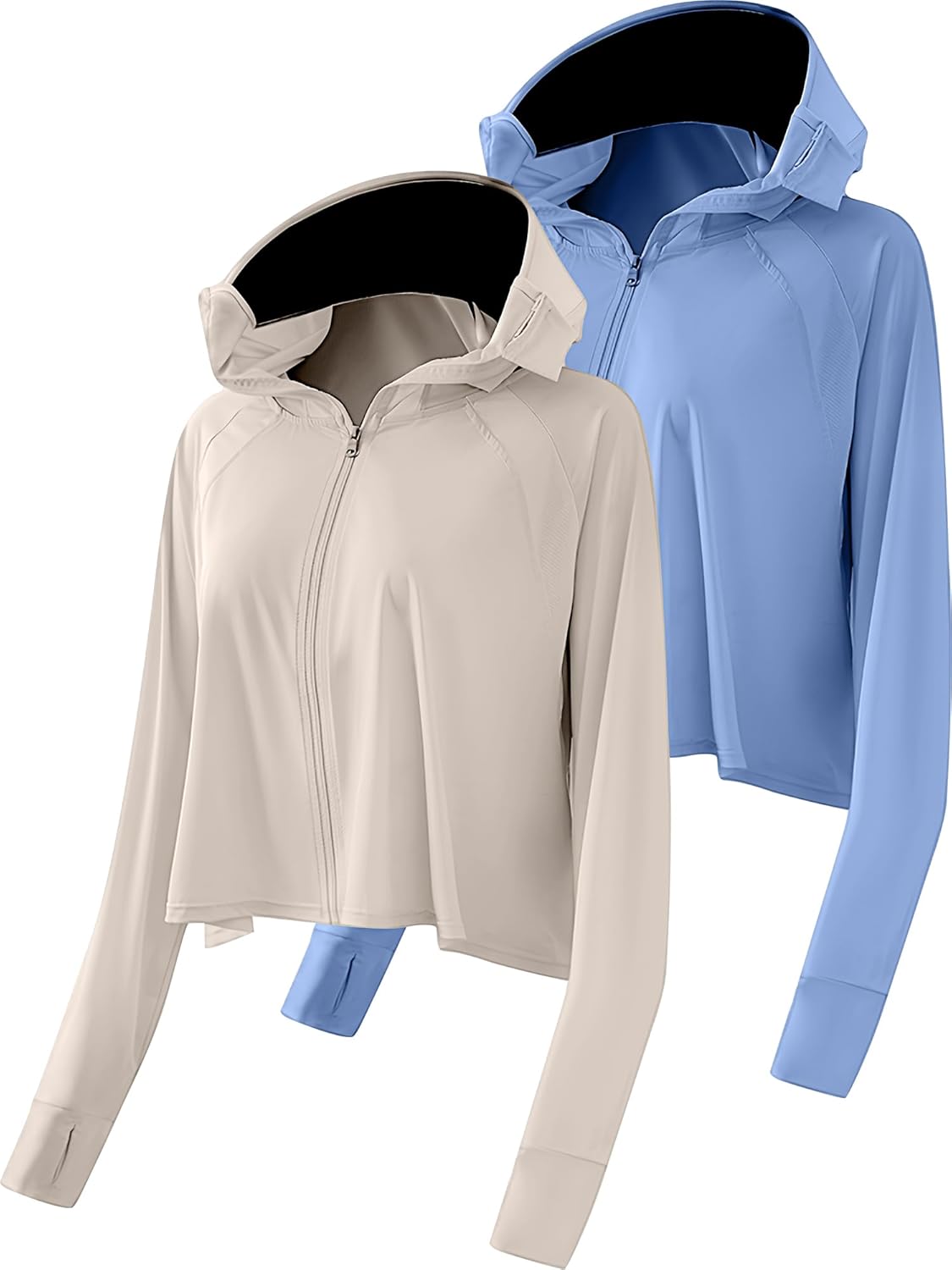 Hercicy 2 Pcs Women's Sun Protection Jacket Hoodie with Mask UV Lightweight Full Zipper Long Sleeve Clothing Shirt Outdoor