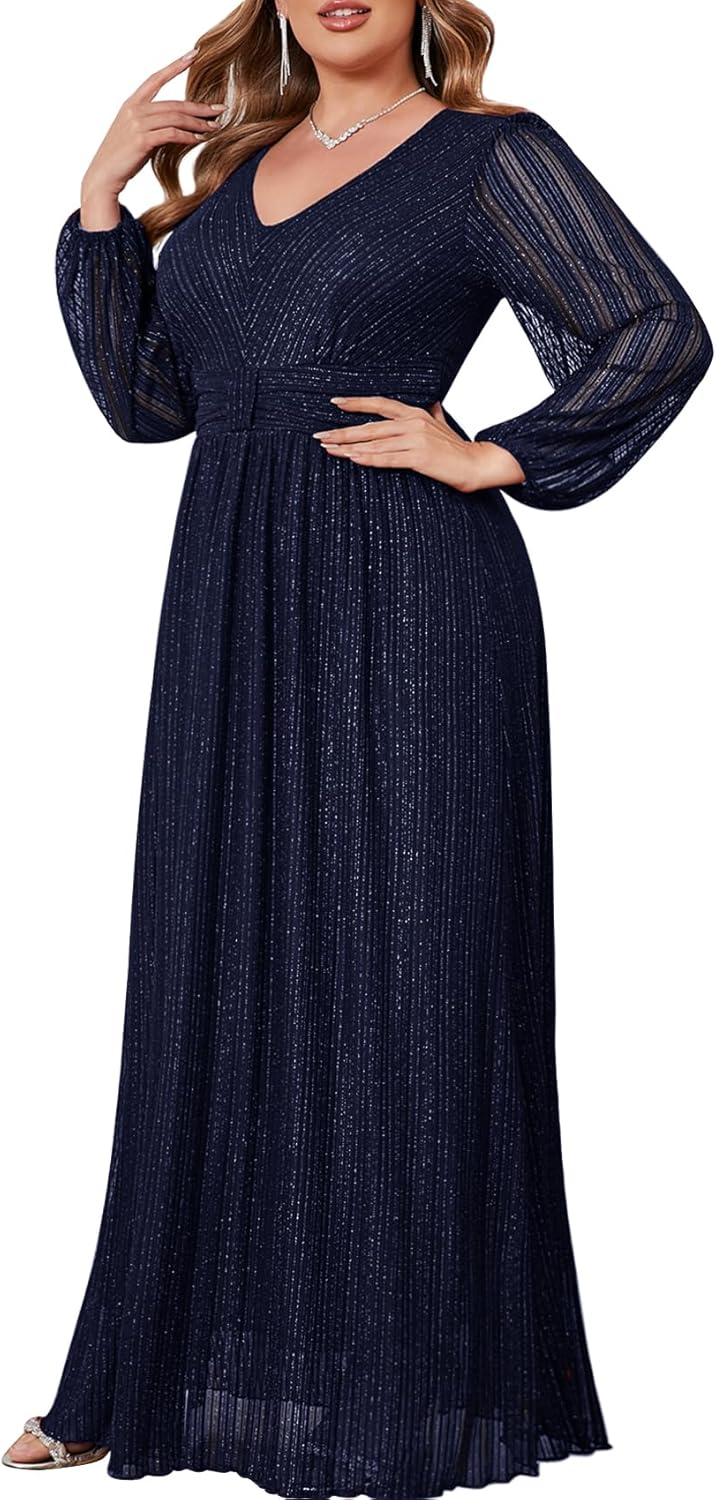 CYCLAMEN Plus Size Sparkly Formal Dress Lace Maxi V Neck Cocktail Evening Gown Wedding Guest